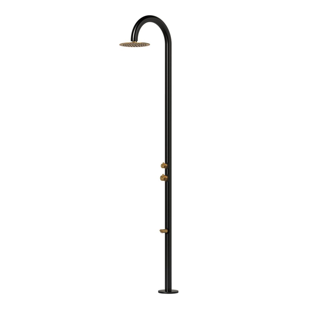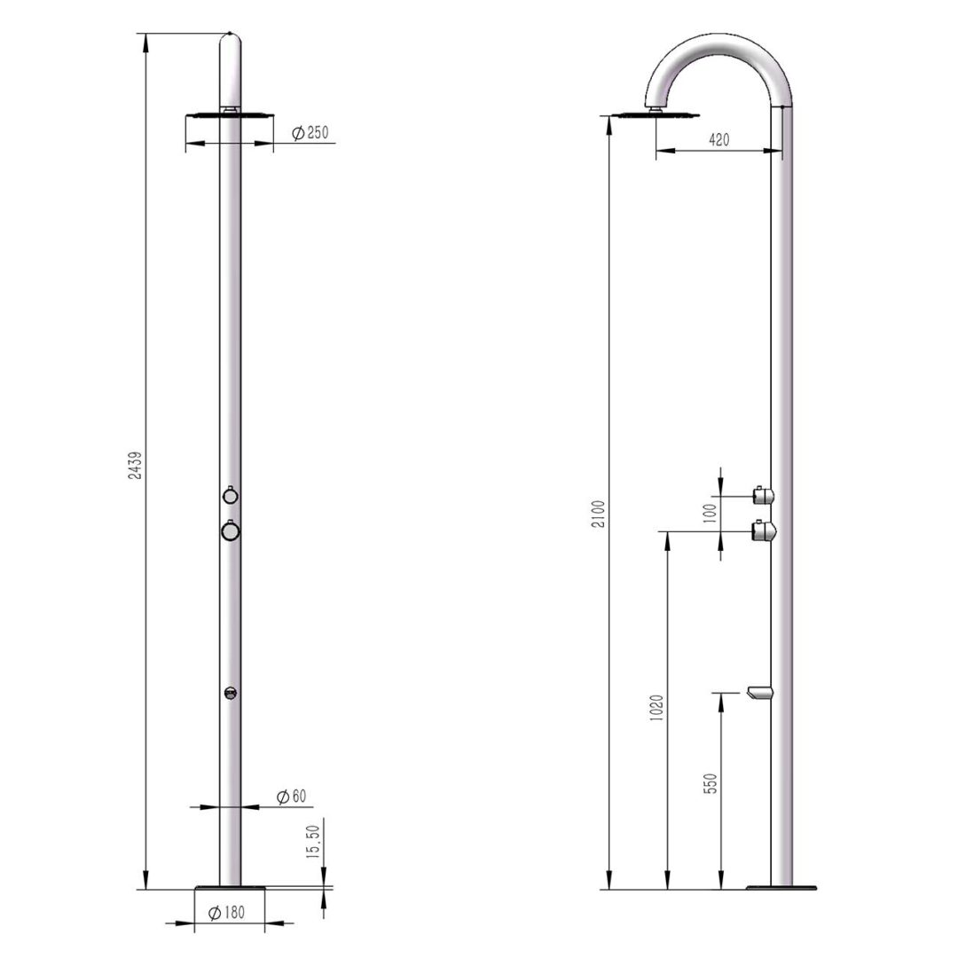 Douche noire pour piscine de haute qualité a été conçue et fabriquée pour toute installation extérieure. La douche avec lave-pieds modèle PALAU est une douche en acier inoxydable satiné Aisi Inox 316 avec entrée d`eau chaude et froide. La douche extérieure est excellente pour un usage commercial, un usage privé, une piscine extérieure-intérieure, un jardin ou une salle de bain domestique. Hauteur 2439 mm. diamètre 60 mm.