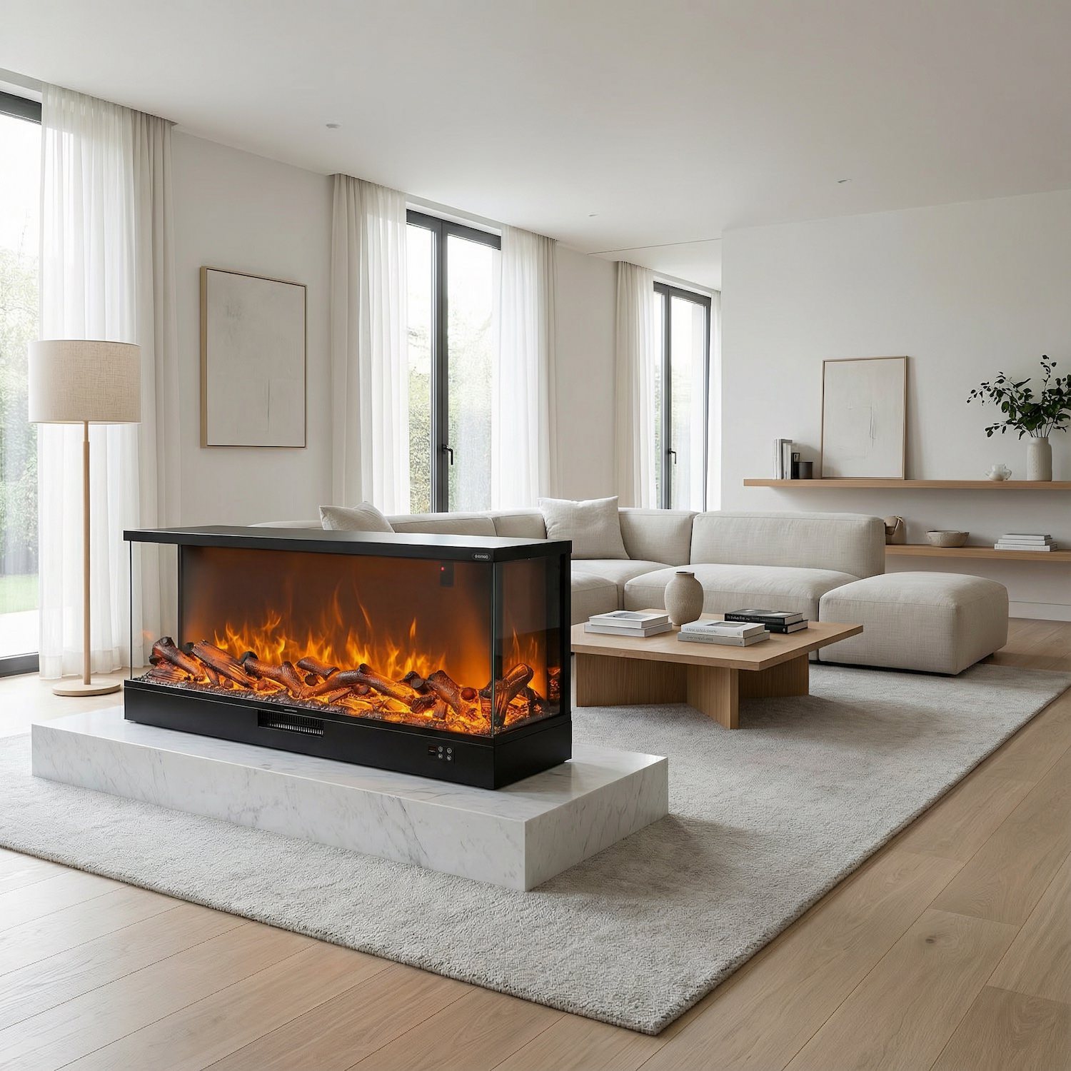 Imaginez que vous puissiez apporter une touche de chaleur à votre maison, sans bois, sans fumée et sans effort supplémentaire. La cheminée électrique Adige-180 à trois faces n’est pas seulement un appareil de chauffage, mais le véritable cœur battant de votre maison. Avec son design panoramique à trois faces, visible sous tous les angles, l’Adige-180 transforme votre maison, votre bureau ou votre gîte en un espace chaleureux, confortable et élégant.