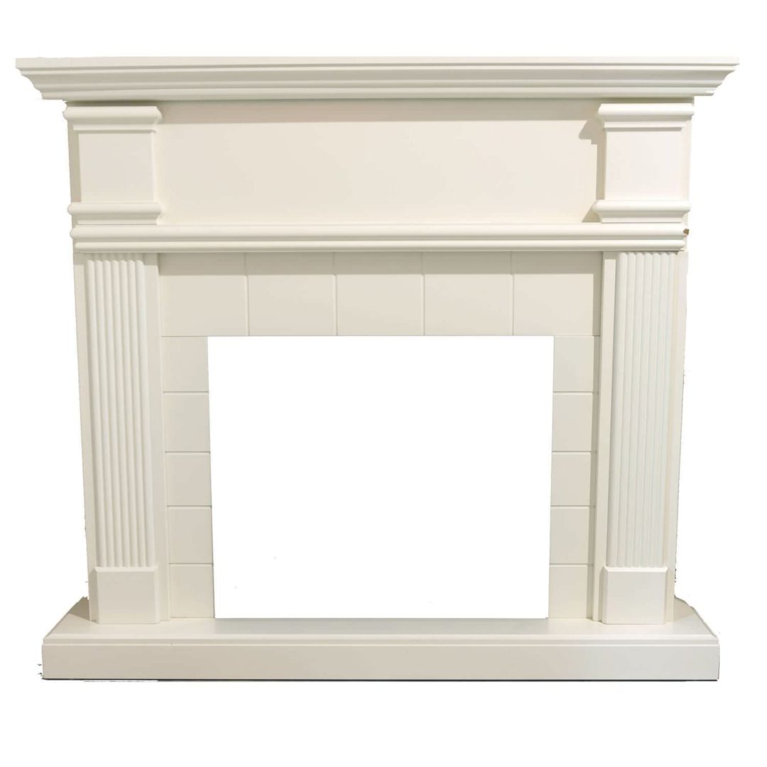 Cadre de cheminée au sol modèle Caldera, couleur blanc crème. Cadre de cheminée au sol de style classique modèle Caldera pour cheminée électrique.