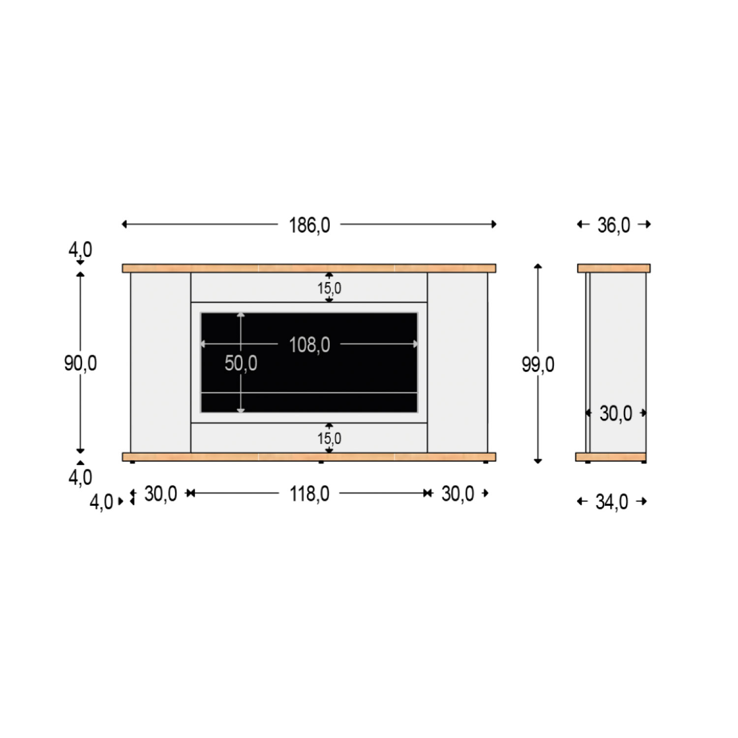 Ce meuble élégant sur mesure pour cheminée électrique dispose également de tout l’espace dont vous avez besoin. Avec ses dimensions généreuses (186 cm de large, 99 cm de haut et 36 cm de profondeur), il est parfait pour devenir le point central d’un salon ou d’un hall d’entrée. L’étagère supérieure offre de l’espace pour les décorations, les livres ou tout ce que vous aimez exposer, tandis que les portes latérales assurent le rangement et la praticité.