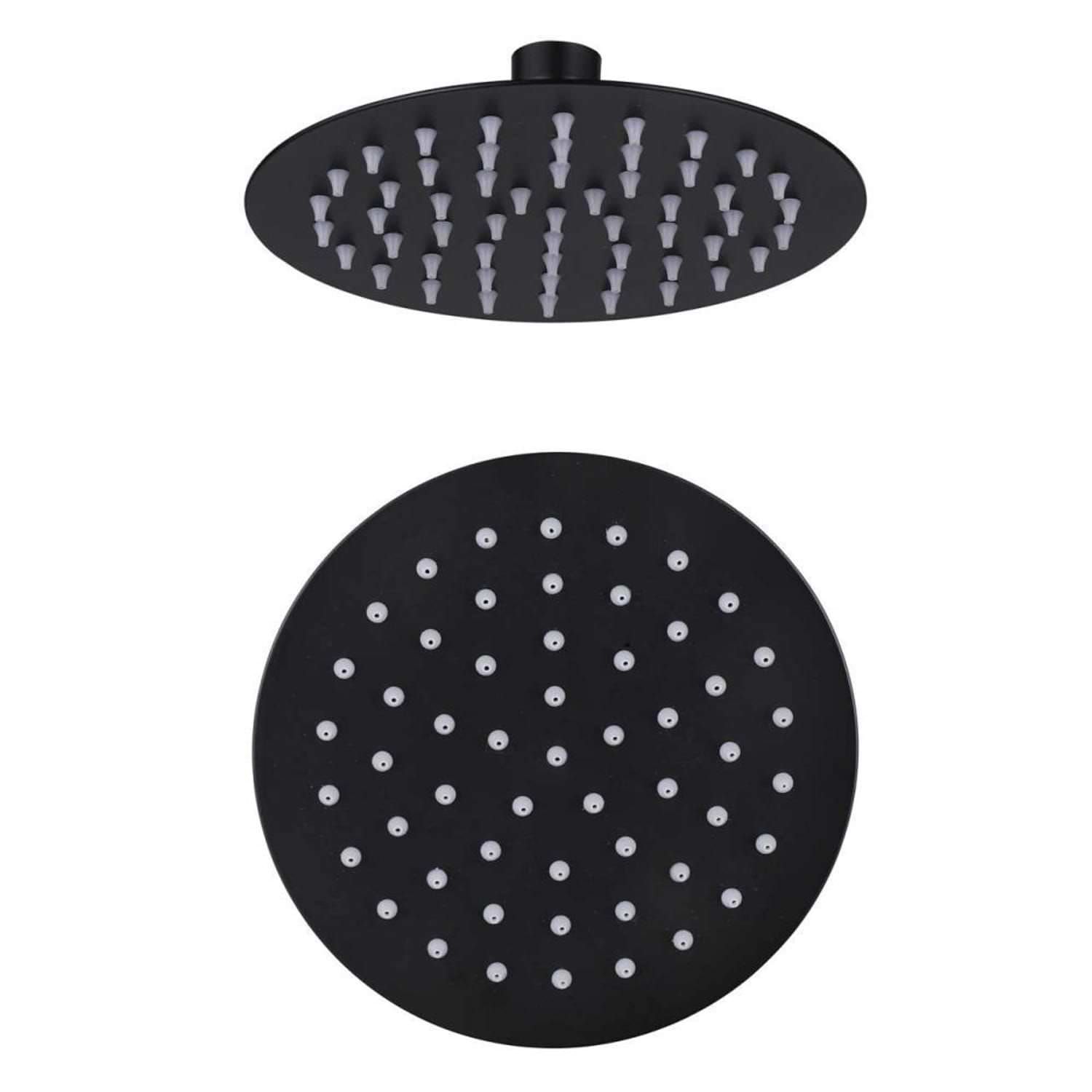 Pomme de douche en acier inoxydable pour douches de jardin. Pomme de douche ronde, taille 15×15, couleur noir mat, avec des buses en silicone. Nous ne proposons que des pièces de rechange originales.